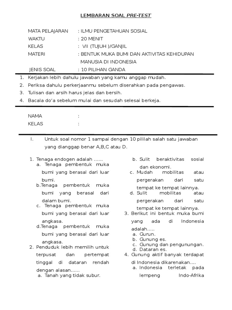 Lampiran 1 Instrumen Penelitian Soal Pretest Dan Postest Mata Pelajaran Bahasa Arab Nama Sekolah Mts Fajar Islam Kelas Materi Pokok Pdf Download Gratis from docplayer.info Setelah mengikuti kegiatan pkb pengawas sekolah di haruskan mengikuti post test (posttest). Contoh tindakan hygiene adalah…… a. Pembahasan soal pre test program ppg (pendidikan profesi guru) dalam jabatan tahun 2017 berikut ini masih ada perbedaan pendapat di soal yang menguji kompetensi guru bidang pedagogik, sehingga jika ada saran pembahasan soal di bidang pedagogik silahkan disampaikan. Tersedia air bersih yang memenuhi syarat b. Panduan psikotest lkit test kepemimpinan youtube. Tulis nama, kelas, dan nomor absen pada lembar jawaban yang tersedia. Lingkungan dan pencemaran (contoh makalah) kumpulan contoh artikel bahasa inggris tentang des. Completion items test of functional word (preposition)