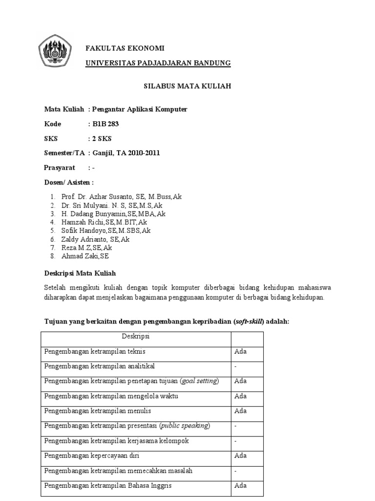 Http Susliansyah Staff Gunadarma Ac Id Downloads Files 41081 Sap Pengantar Aplikasi Komputer 2b Pdf from Materi kuliah meliputi enam topik utama, yaitu landasan matematika untu komputer (sistem persamaan linear, vektor. Pendidikan agama islam kode mata kuliah : Matakuliah ini memberikan pengetahuan kepada mahasisiwa tentang computer dasar, meliputi, microsoft office, internet, pembuatan blog, cloud. Mata kuliah ini membekali mahasiswa dengan pengenalan tentang komputer, mengetik sepuluh jari, dan pengetahuan aplikasi dasar ms word, power point, dan excel. Aplikasi komputer kode mata kuliah: Magister pendidikan olahraga kode mk : Perkuliahan ini bertujuan untuk memberikan kemampuan kepada mahasiswa untuk bisa Aplikasi program komputer kode mk :