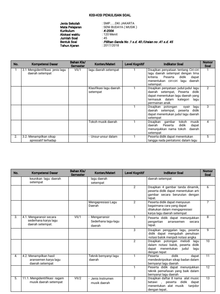 Seni budaya (seni musik) kurikulum : Posted by anams — 06/01/2020 in pendidikan 4 9. Teori lingkup materi level kognitif musik tradisional musik barat musik kontemporer pengetahuan dan pemahaman peserta didik dapat memahami dan peserta didik dapat memahami dan. Dalam postingan kali ini akan saya bagikan kisi kisi un dan kisi kisi usbn tahun pelajaran 2018/2019 untuk jenjang smp, sma, dan smk. Bagi yang belum paham cara download.