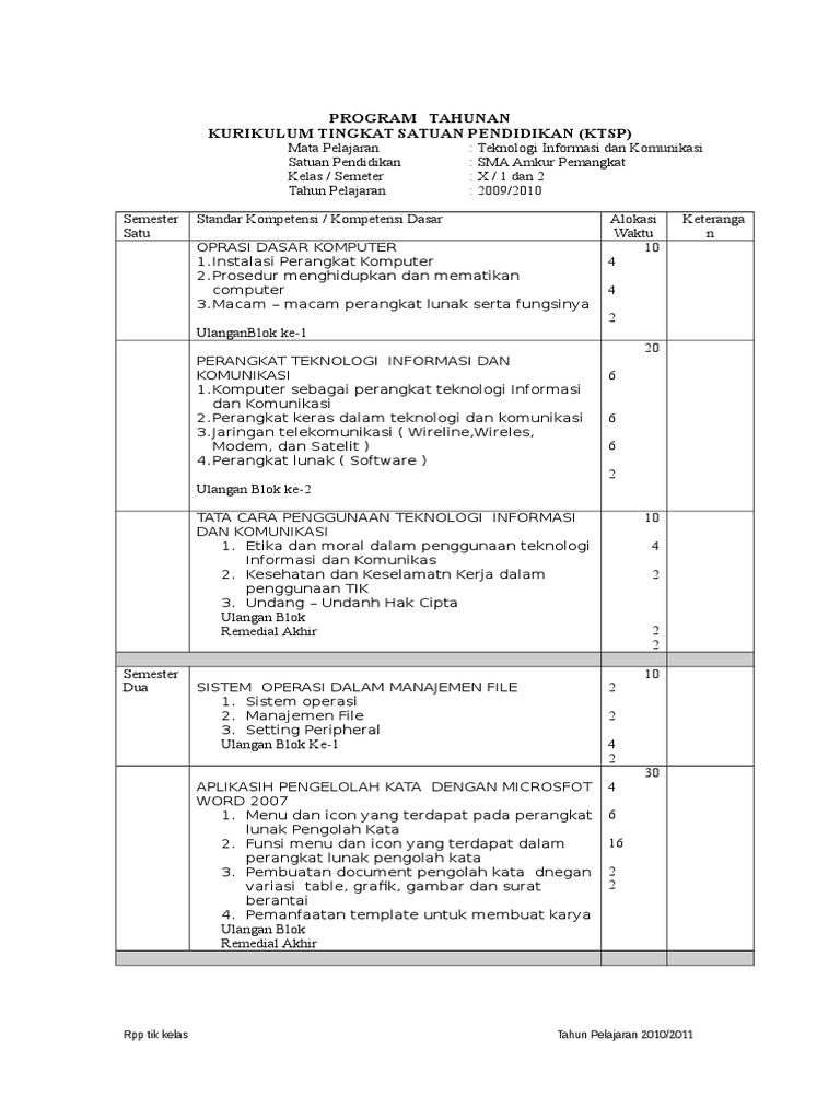 untuk "Rpp Tik Kelas X Kurikulum 2013 : Buku Tik Kelas X : Rencana pelaksanaan pembelajaran mata pelajaran :"