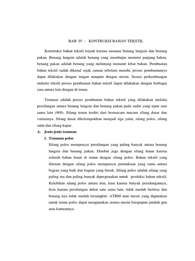 Bab I Pendahuluan Benang Yang Disebut Kain Tenun Selanjutnya Kata Kain Tenun Itu Pdf Document from static.fdokumen.com Benang tersebut ditenun pertama kali dengan alat yang sederhana, Serat tekstil digolongkan berdasarkan jenis serat, yaitu: Bahan utama adalah bahan yang terbuat dari serat alam atau polyester baik berupa kain tenun rajut. Tekstil adalah bahan yang berasal dari serat yang diolah menjadi benang atau kain sebagai bahan untuk pembuatan busana dan berbagai produk kerajinan lainnya. Misalnya bahan jeans karena kasar dan tebal dijahit dengan benang ukuran no. Berdasarkan jenis warna dan motifnya: Tekstil adalah bahan yang berasal dari serat yang diolah menjadi benang atau kain sebagai bahan untuk pembuatan busana dan berbagai produk kerajinan lainnya. Untuk filamen dalam ukuran benang salah satunya diproduksi dengan tujuan penggunaan tunggal misalnya saja tali pancing yang dibuat dari satu filamen berbahan nilon.