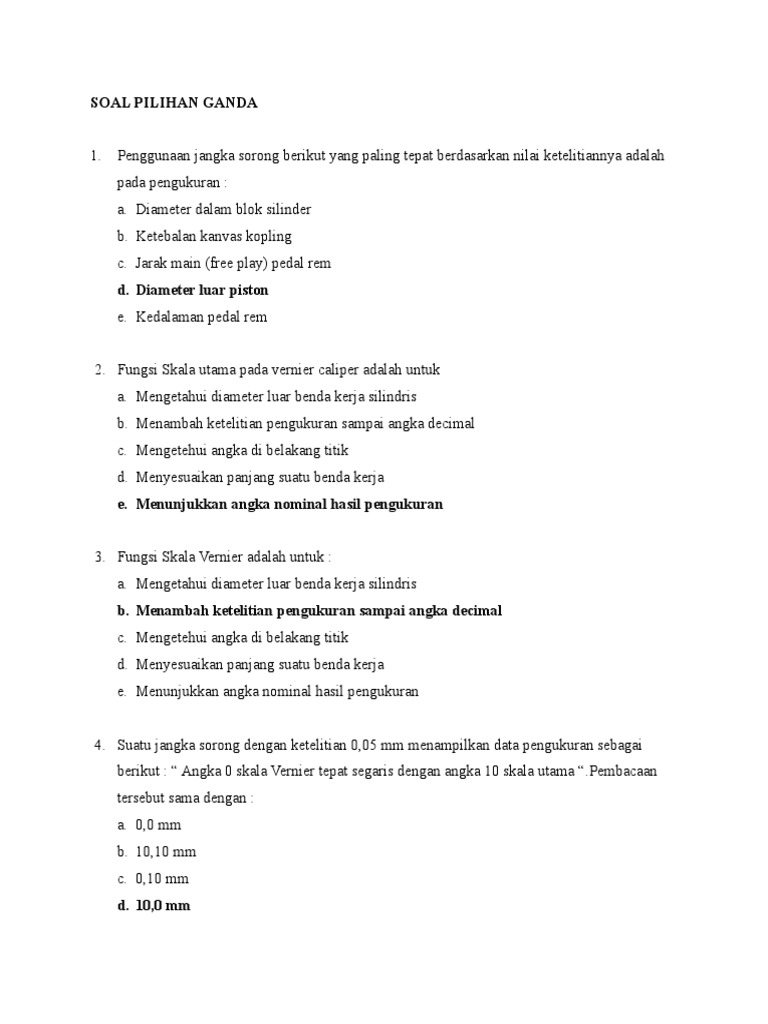 Soal Pilihan Ganda Penggunaan Alat Ukur 6 34m27k5jy8n6 from idoc.pub We did not find results for: Check spelling or type a new query. Setiap satu kali putaran penuh (360o) pada skala thimble micrometer menunjukkan gerakan sepanjang. Maybe you would like to learn more about one of these?